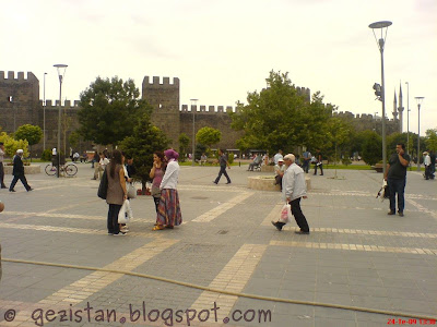 Ümit'le Rahmi Abi'nin evinde yataktan yatağa karanlık odada gecenin 4'üne kadar çene çaldığımızdan, ertesi sabah saat 11'de anca uyanabildik.. Gezmek için şehir merkezine geldiğimizde de Cuma namazı ezanı okunmak üzereydi. Hunat Hatun Camii dışında; 1 TL ödediğim seccade şekli verilmiş bez üstünde kıldım namazı.. [O da ayrı bir şaşkınlıktı benim için; bi de baktım herkesin koltuğunun altında bi seccade, camilere doğru yürüyolar... Normalde İstanbul'un heryerinde kocaman hasırlar filan serilir, dışarıda kalanlar namaz kılsın diye. Ama Kayseri'de böyle bi hizmet sunmuyo camiler :), kendi başının (pardon seccadenin) çaresine bakıcan.. Kayserililerin fıkralara konu olan tüccarlık yanıyla bağlantılı birşey mi bu acaba dedim kendi kendime :)]