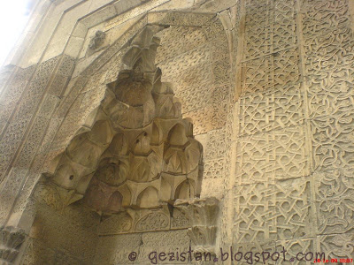 Ve gezi güzergahının son durağında da Sahabiye Medresesi var; yine selçuklu tarzındaki büyüleyici giriş kapısıyla.. Bu giriş kapısı, tipik Selçuklu tarzı. Gülük Medresesi'nde, Hunat Hatun'da; ve Konya'daki Selçuklu eserlerinde de bu geometrik motiflerle dolu görkemli mimariyi gördüm hep..